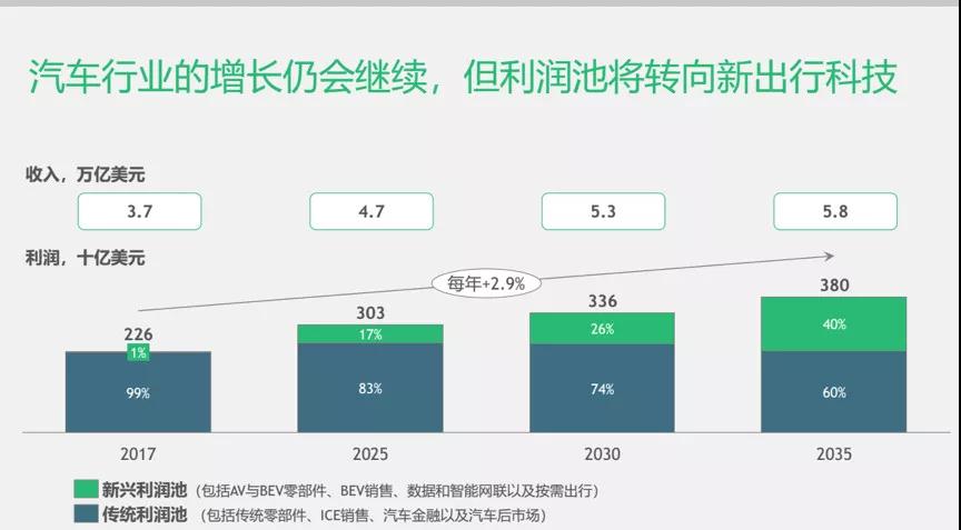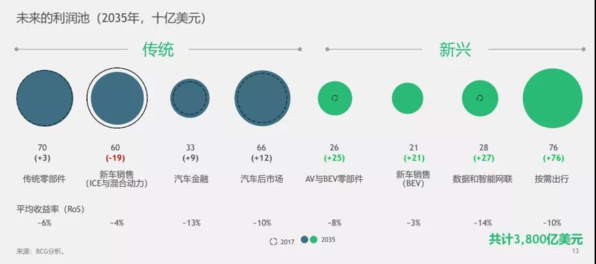 從BCG預測的利潤池結構可以發現,2035年的行業利潤組成和2017年完全不同。