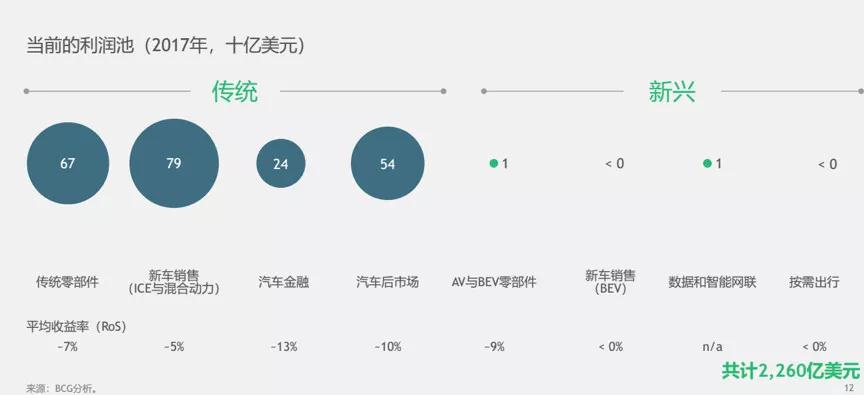 汽車行業產生的收入將繼續增長,未來幾年傳統業務仍將是主要的利潤組成部分,新興“利潤池”的增長速度業相對較慢。